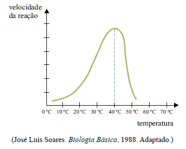 O aumento da temperatura favorece a ação enzimática, até atingir uma temperatura ótima em que a atividade é máxima (no gráfico, indicada por 40ºC), a partir da qual a atividade enzimática cai abruptamente. Essa queda da atividade enzimática é decorrente da desnaturação das enzimas pelo calor.