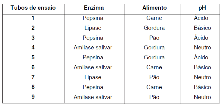 (Unifal) Para a realização de uma pesquisa, enzimas humanas são colocadas em diferentes tubos de ensaio (numerados de 1 a